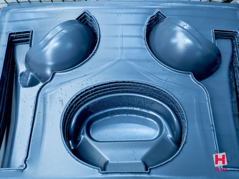 Vakuum-Fräsaufnahmen nach dem erprobtem Hesse Thermoformung-Standard ermöglichen eine hochpräzise Bearbeitung mit engen Toleranzen in 3D, gefertigt auf unseren 5-Achsmaschinen ohne „Umspannen“ – z. B. für Einleger, an Schnittstellen von Baugruppen für Befestigungen oder allgemein definierter Position und Ausrichtung der Fräsmerkmale. Sie erfordert gleichzeitig hohe Maschinenpräzision und CAM-gestützte Programmierung.