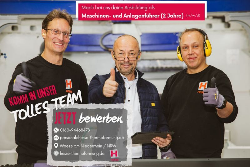 Hast du Lust auf ein technisches Arbeitsumfeld? Dann bist du bei uns genau richtig. Wir produzieren und vertreiben in Weeze am Niederrhein technische Thermoformteile im Vakuum-Tiefziehverfahren. Wenn du deine Ausbildung bei uns machst, findest du neben einem hilfsbereiten Team, das immer ein offenes Ohr für dich hat, ein abwechslungsreiches Aufgabenfeld in einem spannenden Industriezweig.